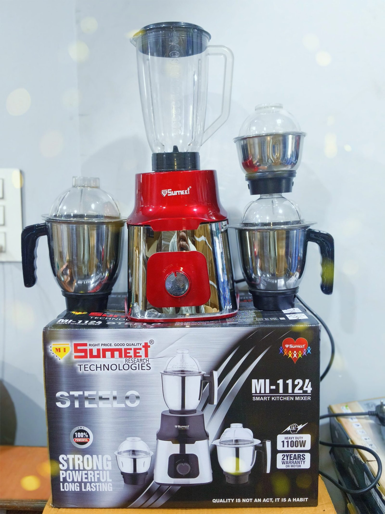 Smart kitchen mixer with 1100W heavy duty motor and 3 S.S. jars.